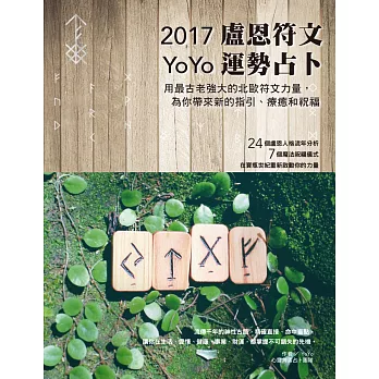 2017 YoYo盧恩符文運勢占卜:用最古老強大的符文力量,為你帶來指引、療癒和祝福購買網址:http://www.books.com.tw/exep/assp.php/87926/products/0010732280?utm_source=87926&utm_medium=ap-books&utm_content=recommend&utm_campaign=ap-201610