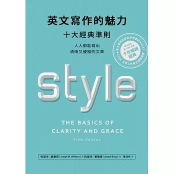 書中涵蓋寫作的核心原則,可幫助你將寫作當成探索思考的一種方式。作者約瑟夫.威廉斯(Joseph M. Williams)為芝加哥大學著名教授,其一生心血都投注在英文語法與修辭,他的書寫能讓你彷彿進入討論寫作的對話,並且教導你能夠清晰寫作--充滿優雅和個人風格。